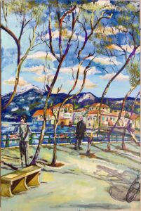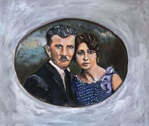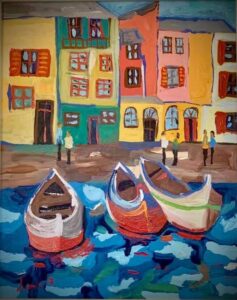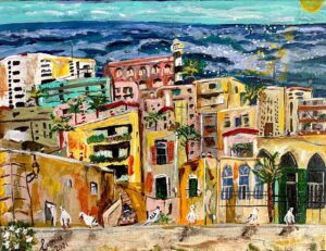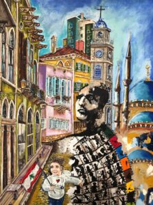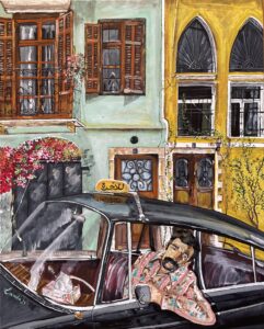 35- “Where to? “-“لوين؟” Year: 2021 Medium: Acrylic on Canvas Size: 24” X 30” (61 cmX76 cm)