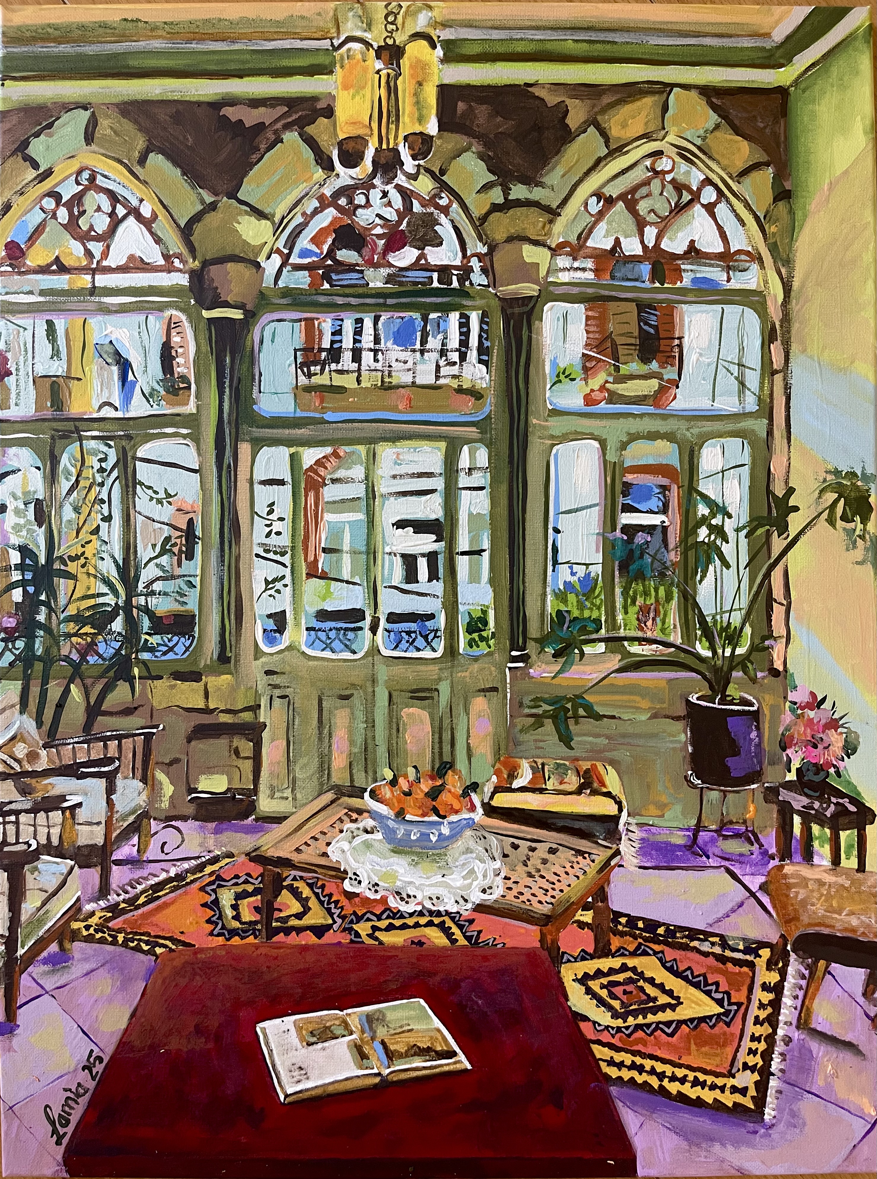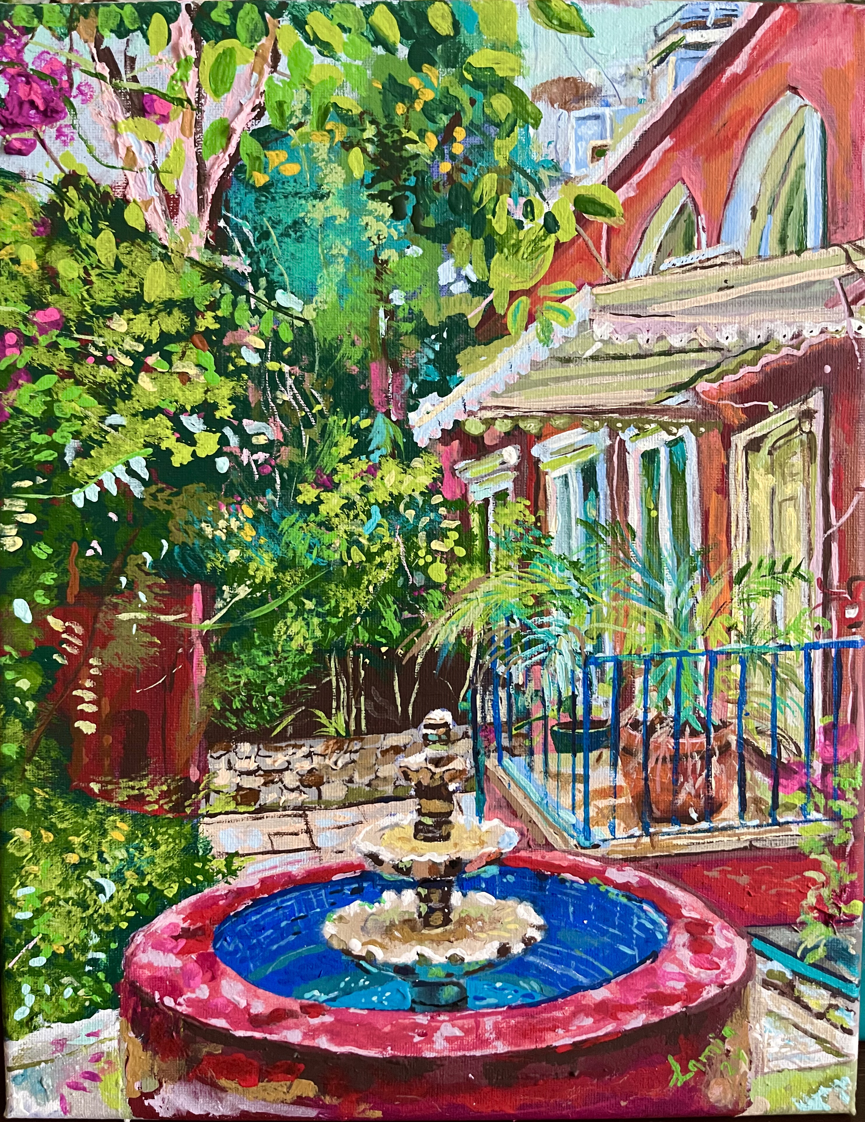 “A Place to Unwind called Sanayeh Garden” Available Acrylic on Canvas 24″x30″ 2020